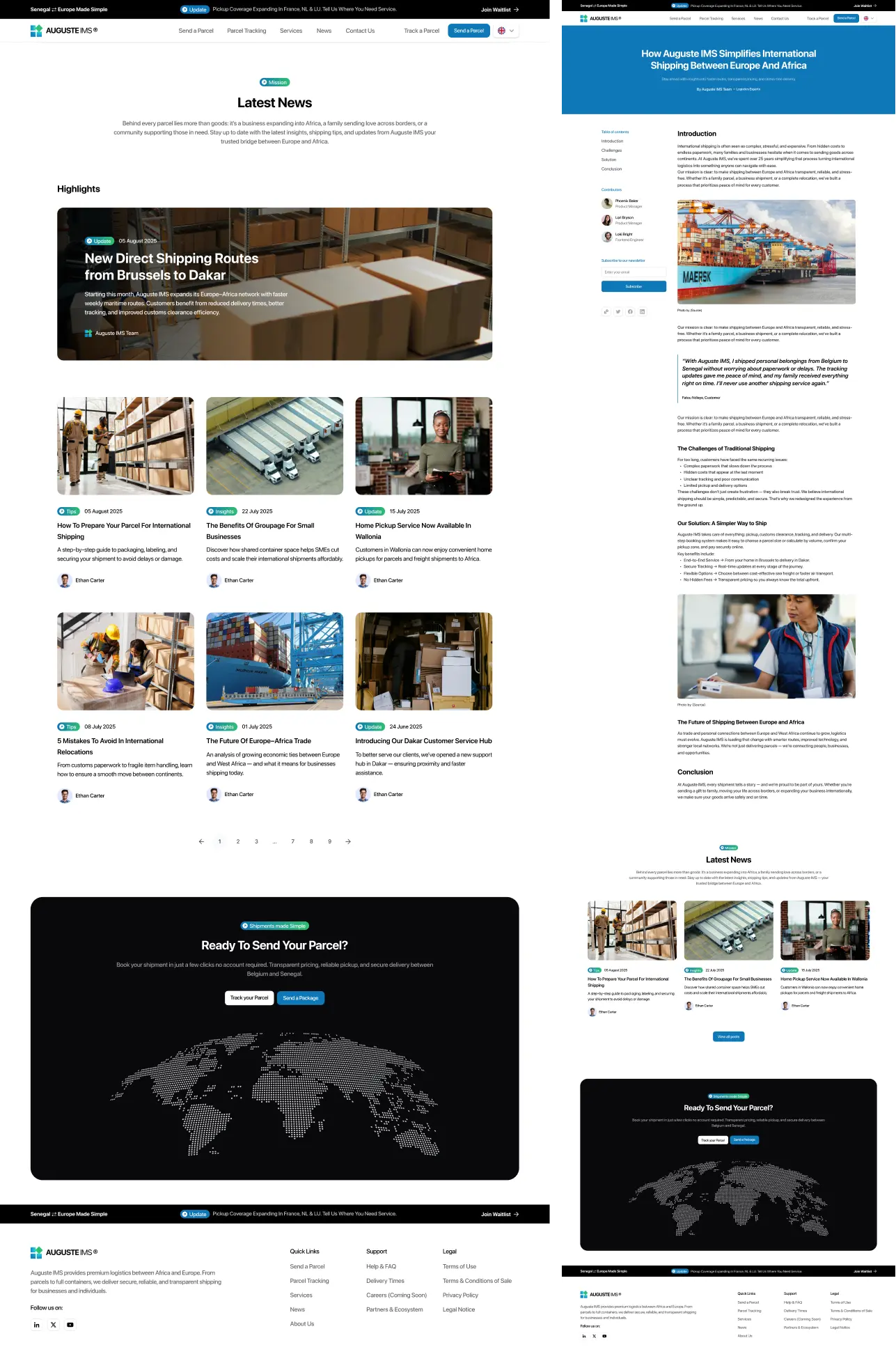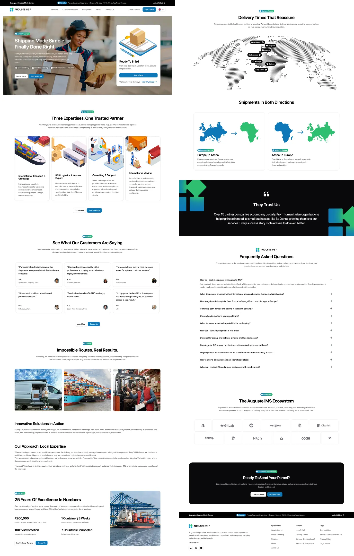 Their website had become obsolete and no longer reflected the professionalism of their services. The aging brand image gave the impression of a small artisanal structure, while Auguste IMS was actually managing hundreds of monthly shipments with a well-oiled logistics operation.
